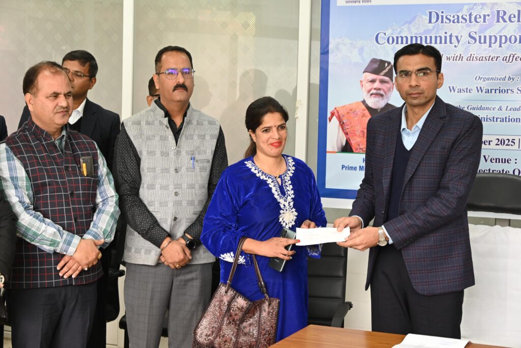देहरादून, दिनांक 29 दिसम्बर 2025 : रायपुर ब्लॉक के आपदा प्रभावित 48 परिवारों को जिलाधिकारी सविन बसंल ने ₹17 लाख की आर्थिक सहायता चेक प्रदान किए हैं। जनपद देहरादून के रायपुर ब्लॉक में विगत 15 सितम्बर की रात्रि को हुई अतिवृष्टि एवं बादल फटने की घटना से प्रभावित परिवारों को राहत प्रदान करने की दिशा में जिला प्रशासन देहरादून द्वारा वेस्ट वॉरियर्स संस्था के सहयोग से एक महत्वपूर्ण पहल की गई।