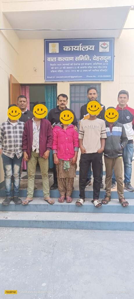 जिलाधिकारी निर्देशन में आज दिनांक 22/02/2025 को बालश्रम मे लिप्त एक बालिका व चार बालकों को सेलाकुई से भिक्षावृत्ति रेस्क्यू टीम देहरादून द्वारा रेस्क्यू किया गया बच्चों कि प्राथमिकी व मेडिकल करवा कर बाल कल्याण समिति के समक्ष प्रस्तुत किया गया, जिसमें एक बालिका को राजकीय बालिका निकेतन में ओर चार बालक को समर्पण (खुला आश्रय) में रखवाए गए।