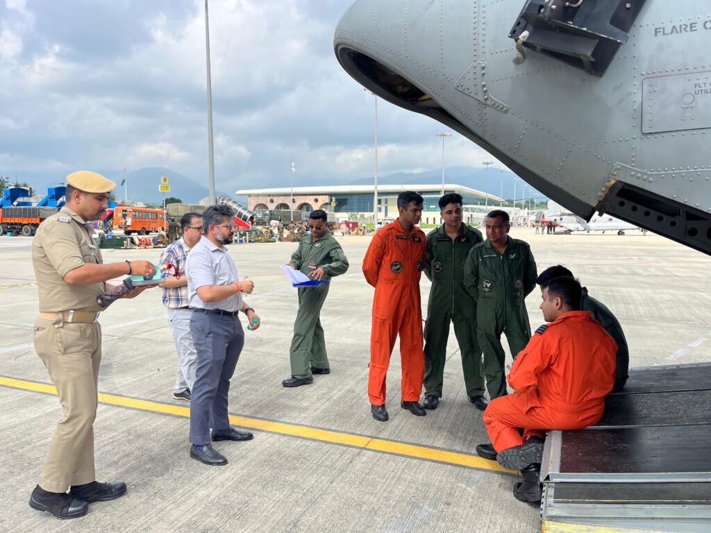 *जॉलीग्रांट एयरपोर्ट से राहत सामग्री एवं मशीनरी चीनूक से हर्षिल पहुंचाई जा रही है*