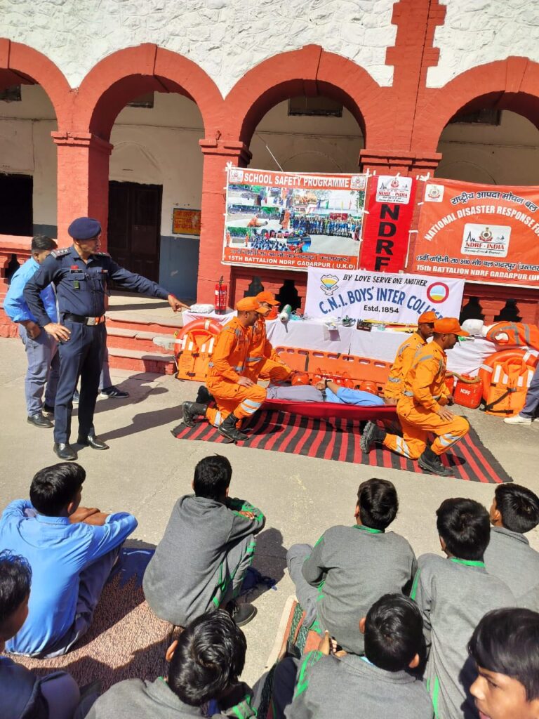 सी. एन. आई. बालक इंटर कॉलेज पलटन बाज़ार, देहरादून में इंस्पेक्टर कपिल अहलावत एवं उनकी 10 सदस्यों कि टीम द्वारा श्री सुरेश कुमार दराल (कमान्डेंट) 15वी वाहिनी राष्ट्रीय आपदा मोचन बल के तत्वाधान में स्कूल सेफ्टी प्रोर्ग्राम (SSP) के अंतर्गत आपदाओं से निपटने के लिए कक्षा 6 से 12 तक के छात्रों से साथ-साथ शिक्षकों, शिक्षिकाओ एवं शिक्षणेत्तर कर्मचारियों को एक दिवसीय प्रशिक्षण दिया गया |